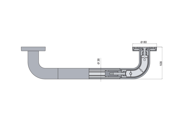 Ø36 mm çapında, kesintisiz ekstrüzyon yöntemiyle üretilmiş naylon ray, iç kısmı boyunca tam boy alüminyum çekirdek ile donatılmıştır, uç kapaması bulunmaz.