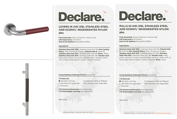 Declare Etiketi, yapı sektörü için bir besin etiketi gibidir. Müşterilerin daha sağlıklı iç mekân yaşam alanları oluşturmasına yardımcı olmak amacıyla, ürünlerin içerik bileşenlerini şeffaf bir şekilde açıklayan bir ürün bilgi etiketidir. Bir ürünün menşeini, hangi malzemelerden üretildiğini ve kullanım ömrü sonundaki bertaraf sürecini ortaya koyar. TOCCO Koleksiyonu için, Uluslararası Living Future Institute (International Living Future Institute) platformunda yer alan Declare “Red List Free” (Kırmızı Liste İçermez) Etiketi’ni sunmaktan gurur duyuyoruz.